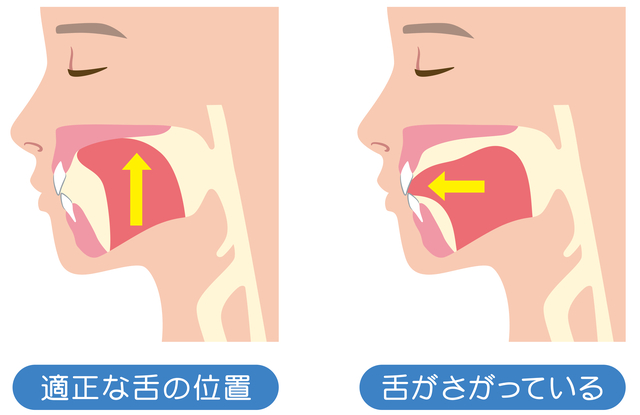 舌の位置が間違っていると、舌の圧力が歯に偏って加わり、歯が少しずつ移動してしまいます。