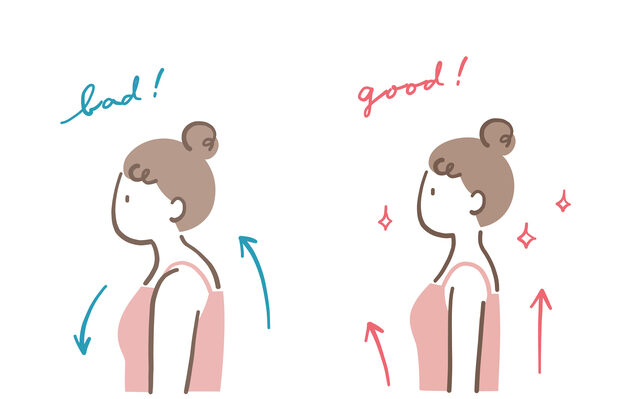 姿勢が崩れると、まず首や肩の筋肉が緊張します。