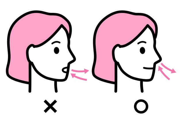 - 鼻でゆっくり呼吸する練習をする
