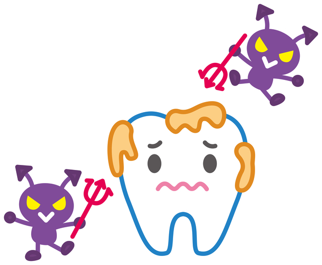 虫歯は、歯の表面に残ったプラーク(歯垢)の中で菌が酸を作り、